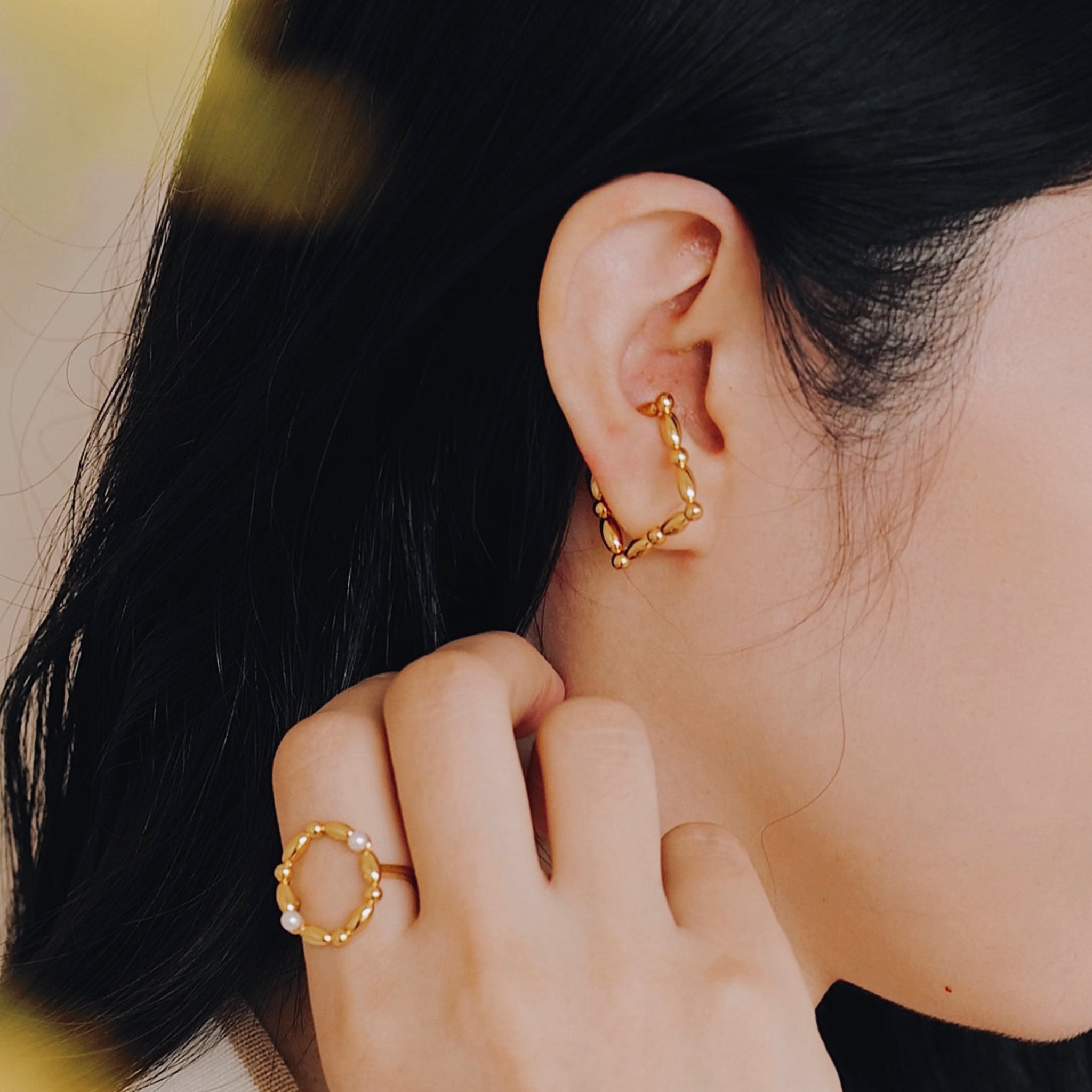 蘊含結構感的簡約設計,柔和低調卻充滿力量。開口細節讓配戴更具靈活性,可作為耳扣或戒指,輕鬆融入各種日常造型。