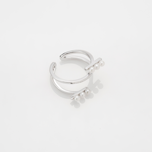 雙側的平行珍珠線條相互呼應,小巧又別緻。此款開口式設計兼具細節巧思與存在感,不僅可以微調整戒圍尺寸、也可以做耳扣配戴,是備受大眾期待的獨特單品! 【顏色】金色 / 玫瑰金 / 銀色 (亮面非霧面) 【尺寸】美規六號 (16.5 mm / 可微調整戒圍) 【材質】黃銅電鍍18k金,玫瑰金和白金,並採用 3 mm天然淡水珍珠。 ➣ 由於採用天然淡水珍珠,所以珍珠大小、顏色可能會有些微的不同。