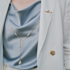 Julia 的流線造型靈感來自於過去詢問度很高的 Judith 戒指款式。如水波般靈動的金屬線條與溫潤渾圓的淡水珍珠完美呼應,不僅適合與襯衫、洋裝等春夏造型做搭配,也很適合於秋冬時節別在外套、圍巾上作一個精緻的收尾,絕對是值得關注的單品之一!